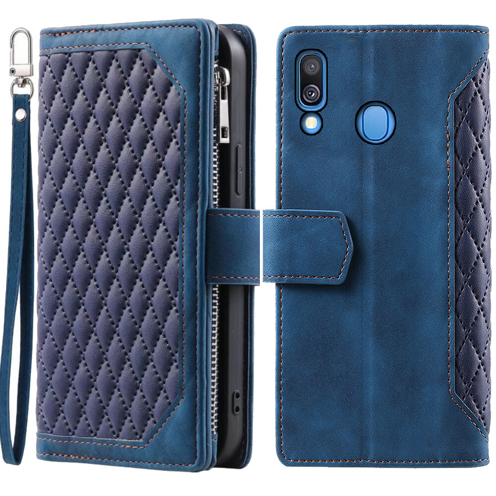 Luxury Rhombic Wallet Case,Leather Zipper Flip Card Case For Samsung Galaxy A40