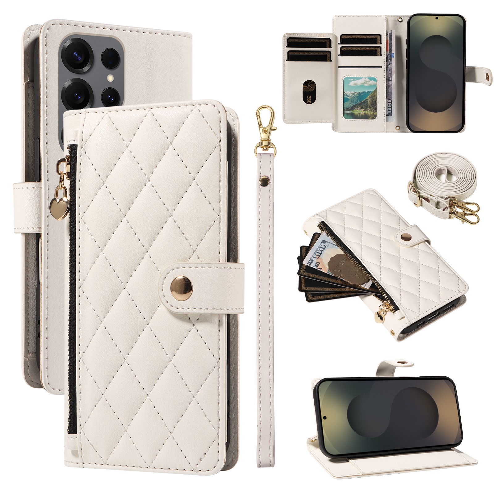 Leather Flip Zipper Wallet Case+Strap For Samsung Galaxy S25 FE S24 S23 S22 S21