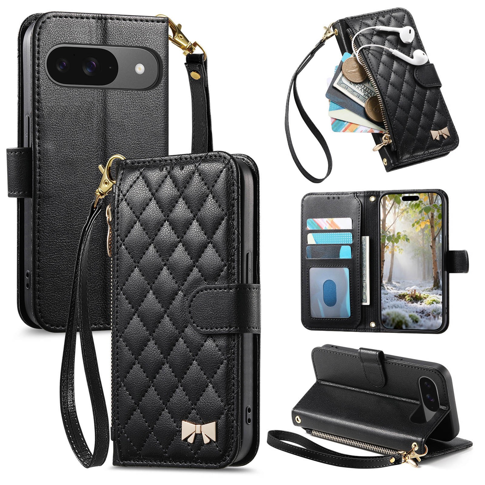 For Google Pixel 10 Pro XL/10/9A Leather Magnetic Flip Stand Wallet Case+Strap
