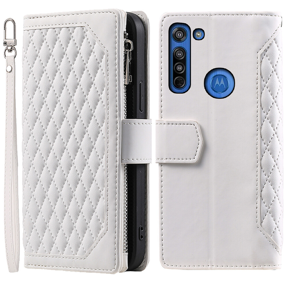 Luxury Rhombic Leather Wallet Case Zipper Flip Card Case For Motorola Moto G8