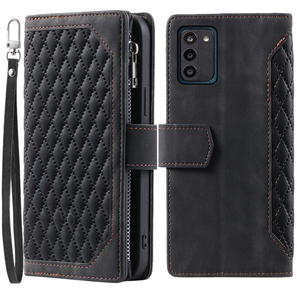 Luxury Rhombic Leather Wallet Case Zipper Flip Card Phone Case For Nokia G100
