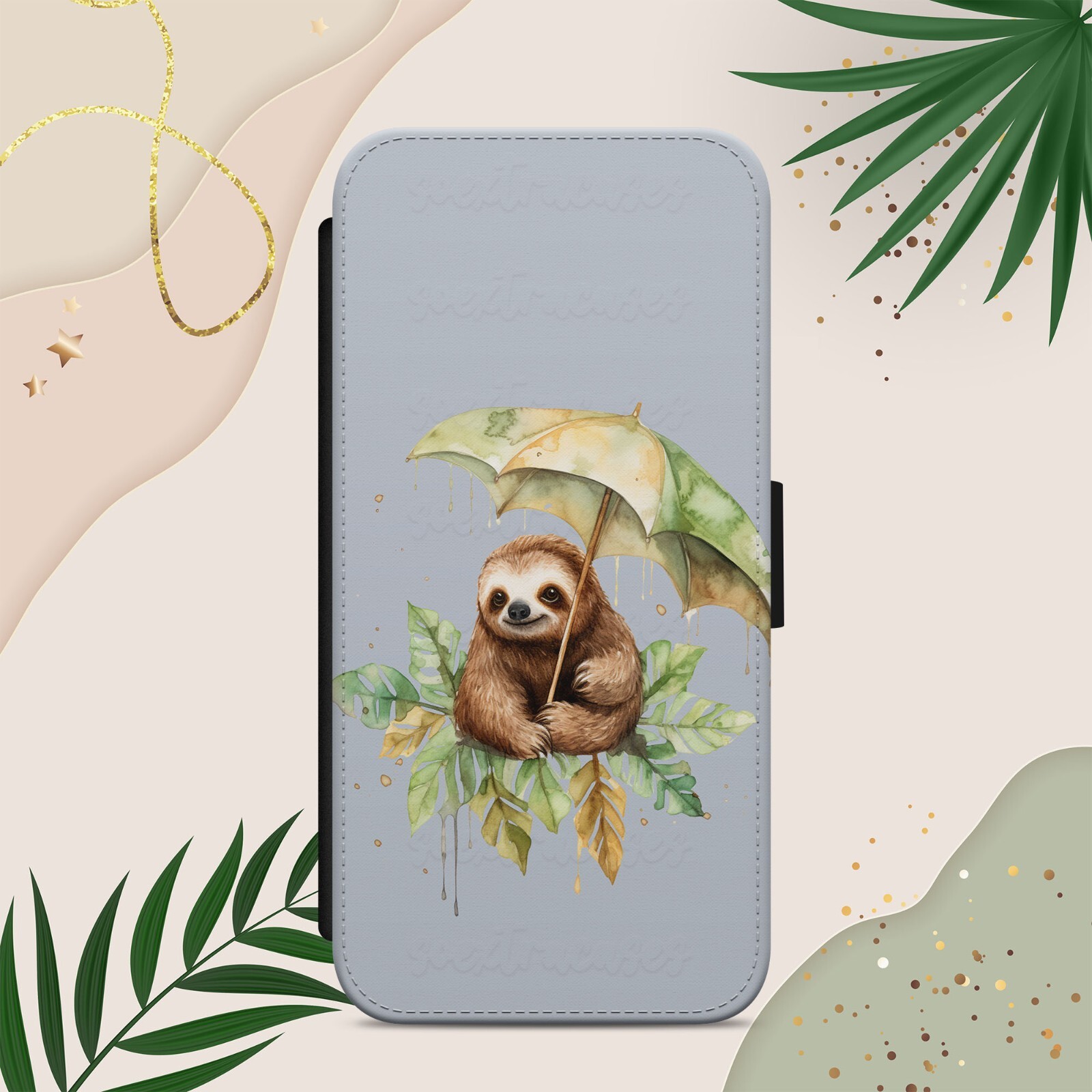 SLOTH UMBRELLA PHONE CASE COVER FOR IPHONE SAMSUNG PIXEL GREY FLIP WALLET