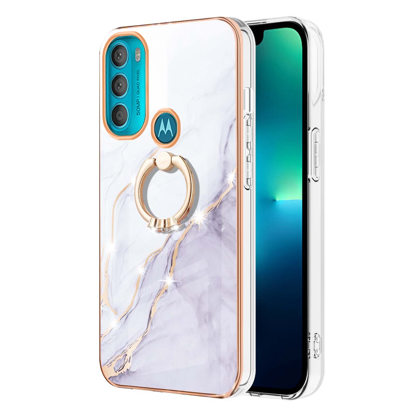 For Motorola G200 G31 G51 G71 G60 Ring Marble Pattern Back Case Phone Case Cover