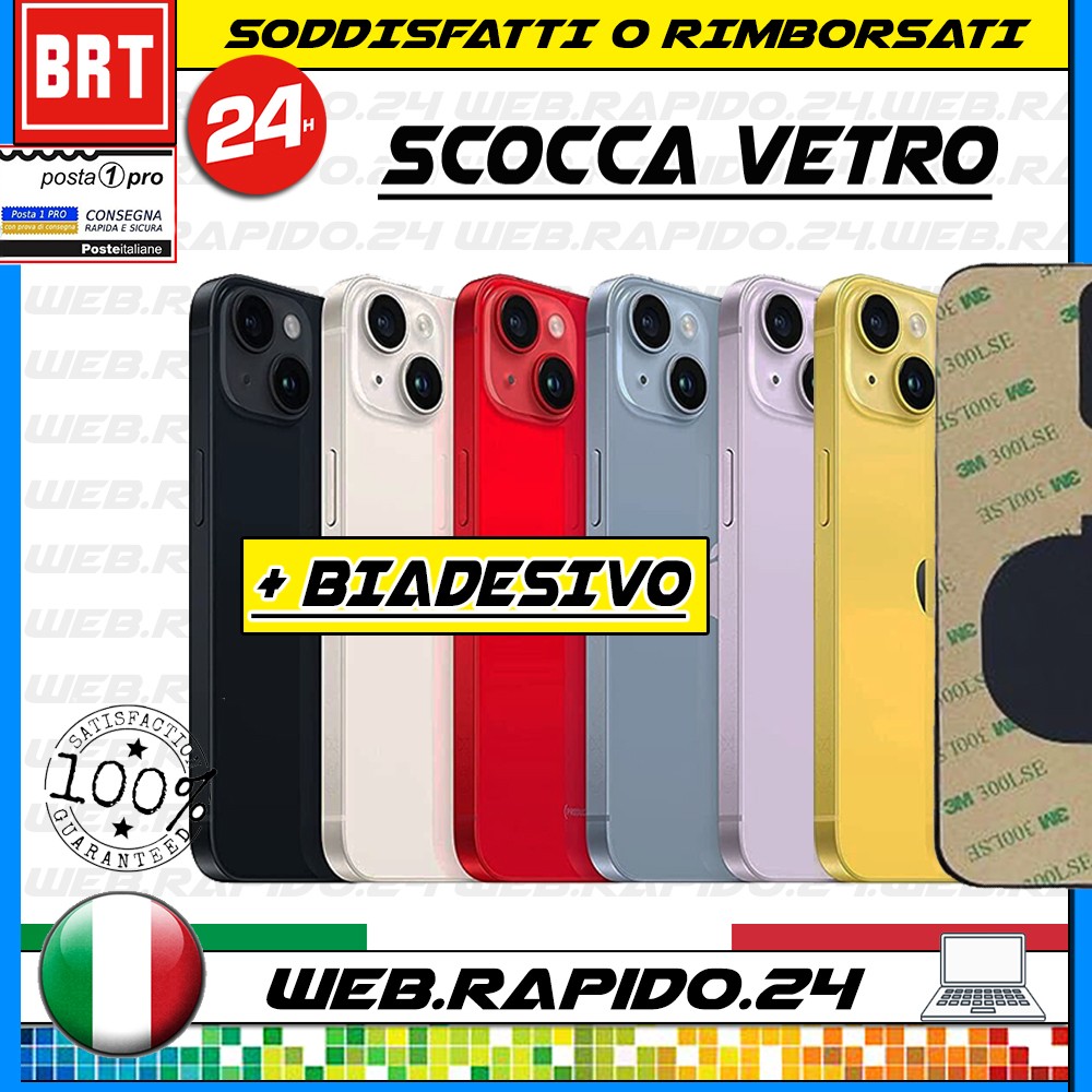 BACK COVER SCOCCA POSTERIORE X APPLE IPHONE 14 VETRO+BIADESIVO LOGO BIG HOLE
