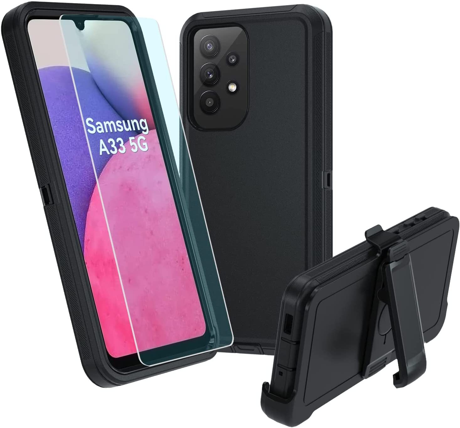 Case For Samsung Galaxy A33/ A53 Hybrid Belt Clip Phone Cover Tempered Glass