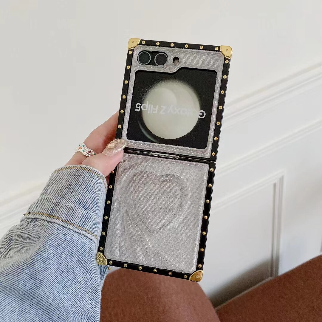 Leopard Paint Marble Flower Grid Leather Phone Case For Samsung Z Flip 3 4 5