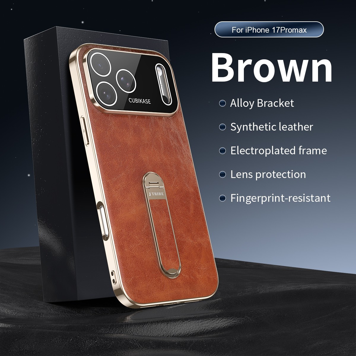 Plated Leather Finish Stand Case For iPhone 17 Pro Max/17 Pro/17 Camera Protect