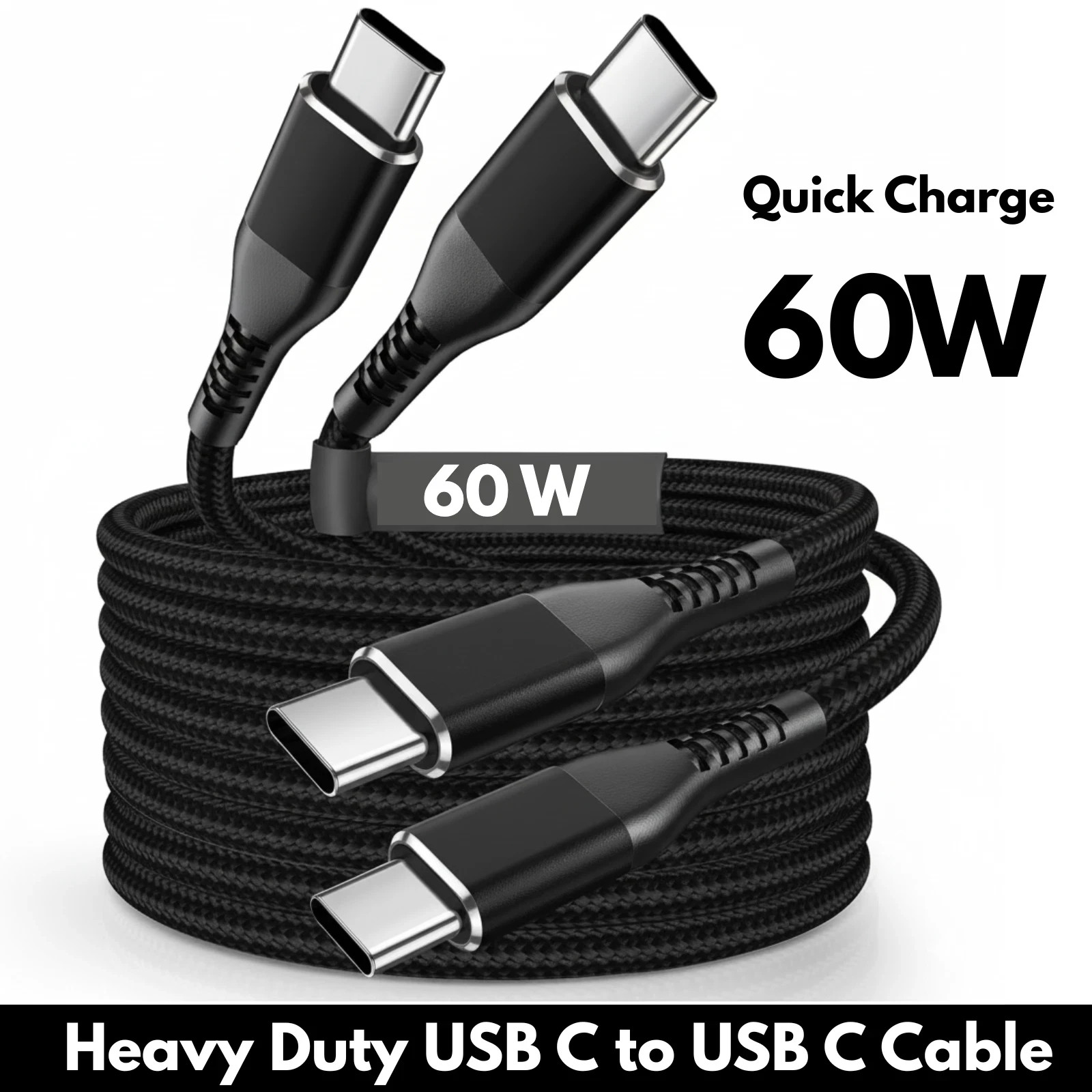 Type C to Type C Cable 3A 60W Fast Charger Braided Long Lead 0.25M 1M 2M 3M
