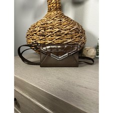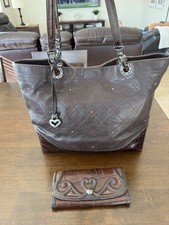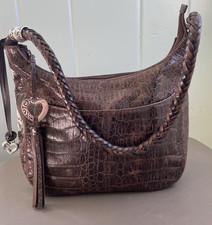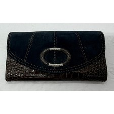 Brighton Croc Embossed Brown & Black Leather Trifold Wallet Checkbook Clutch