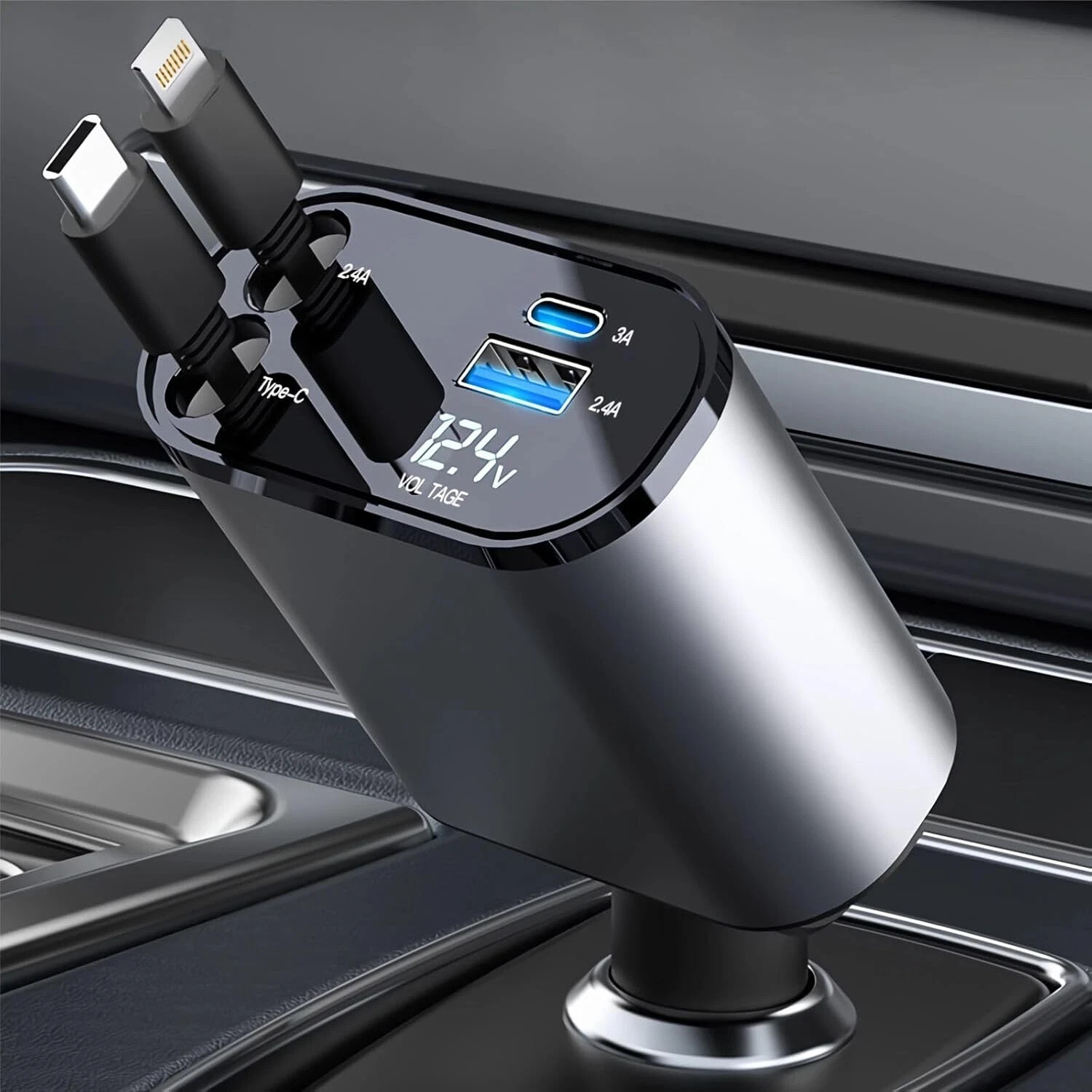 120W 4IN1 Retractable Car Charger USB Type C Cable For Phone Fast Charge