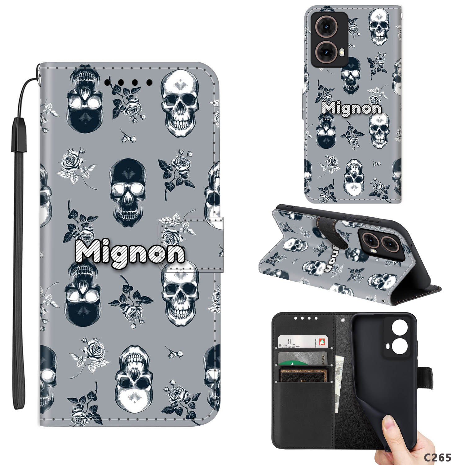 Skull Custom Case Folded Magnetic Leather Cover For Motorola G35 E15 G86 G56 G05