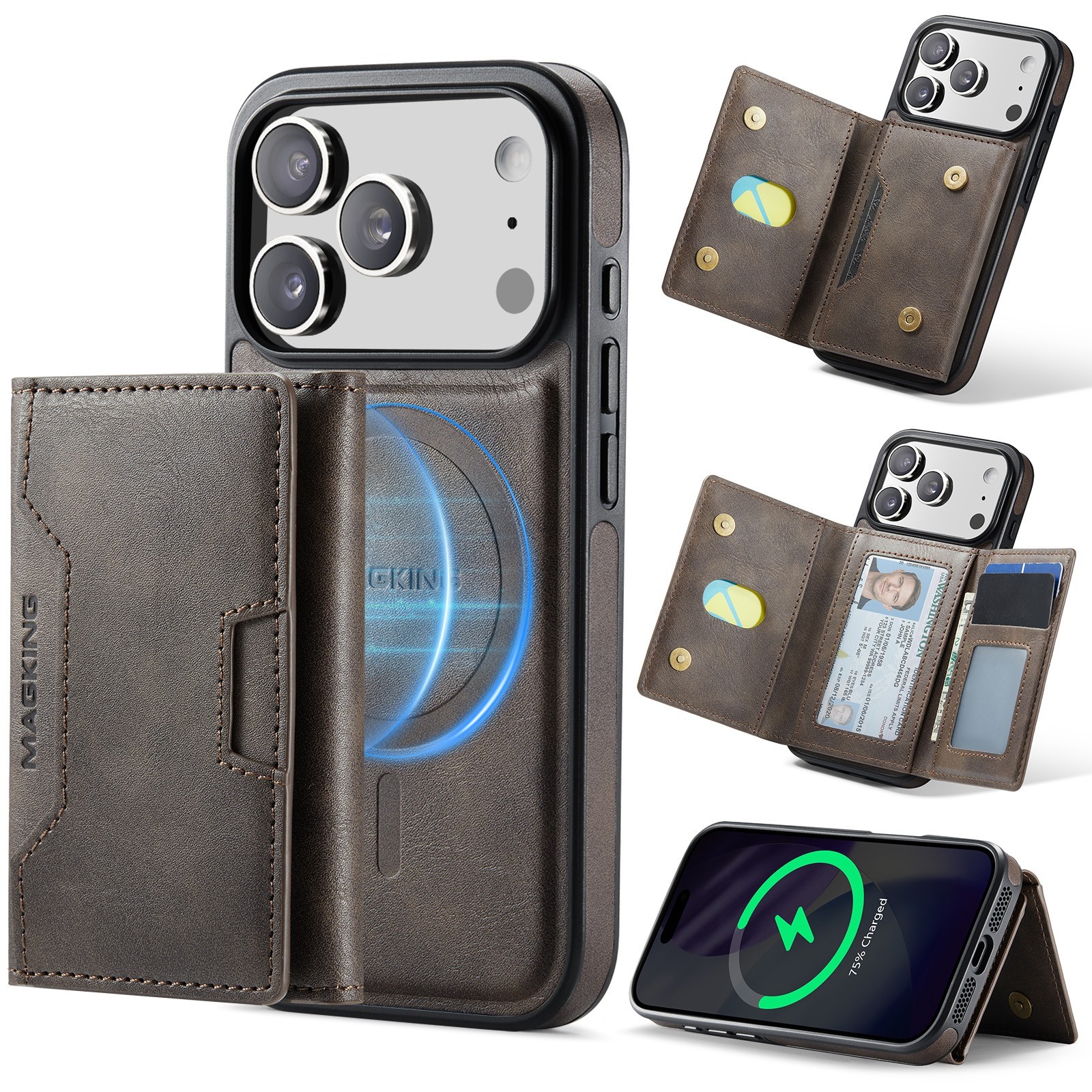 For iPhone New 2-in-1 Detachable Magnetic Leather Wallet Case Card Holder Cover