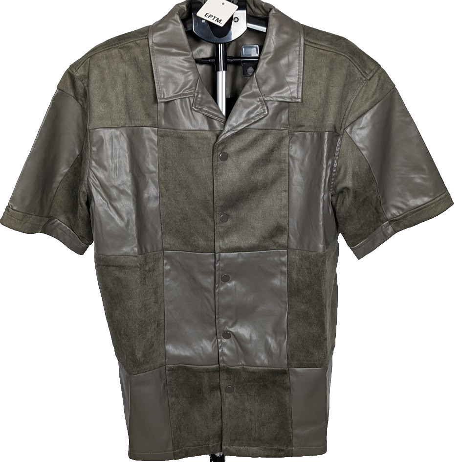 NEW EPTM Everything Premium Street Wear Color Block PU Leather Olive Shirt XXL