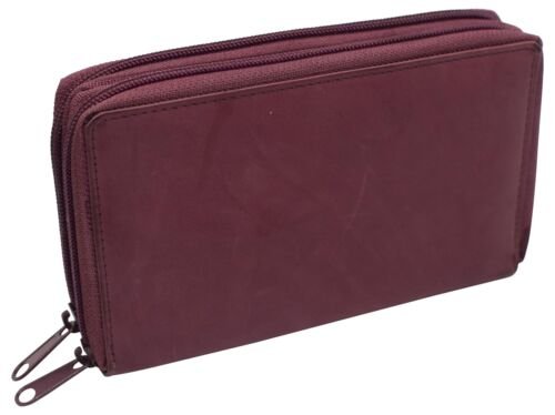 Women's RFID Blocking Double Zipper Smartphone Leather Wallet with Removable Che