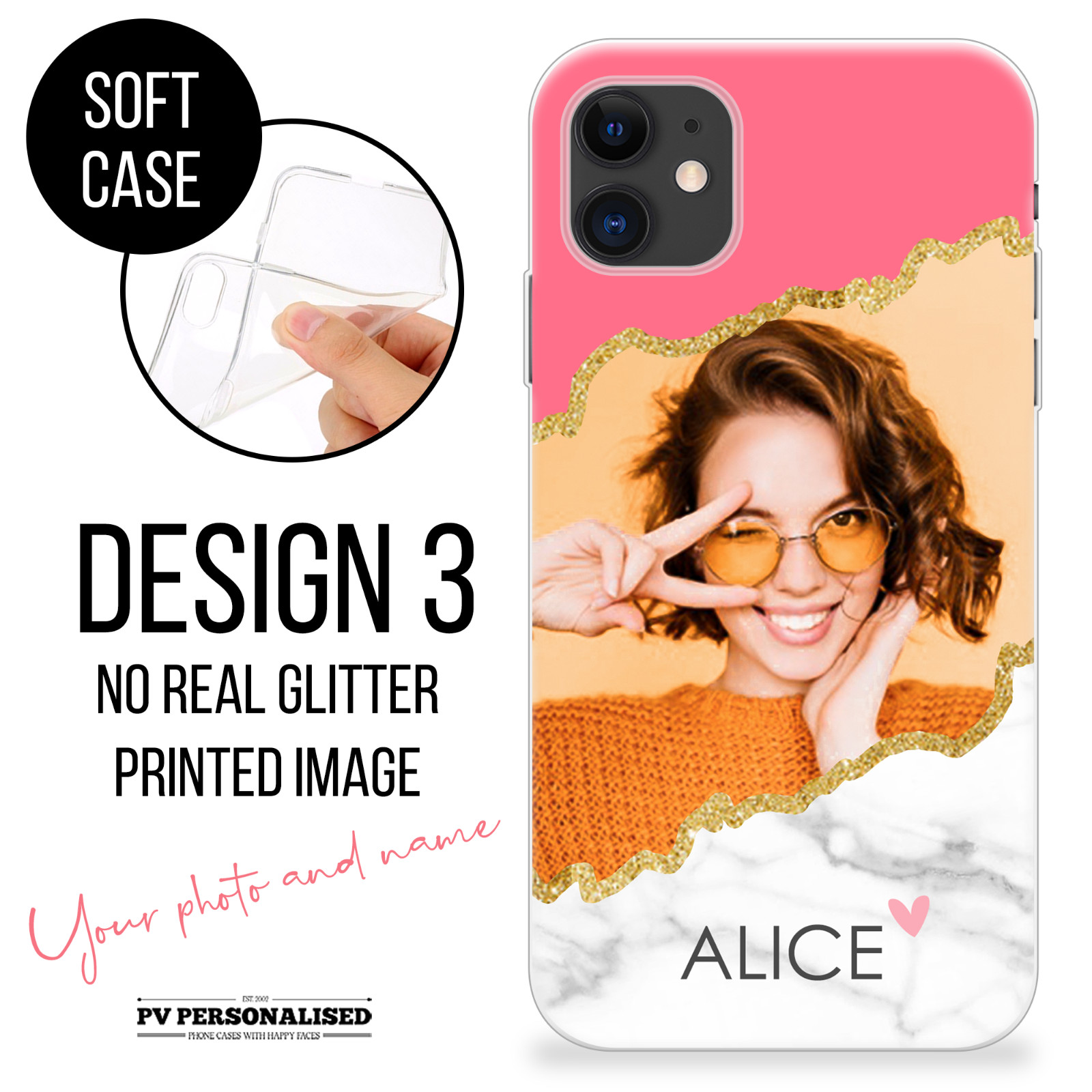 Personalised Photo Silicone Name Phone Case For iPhone 15 14 X 12 13 11 Collage