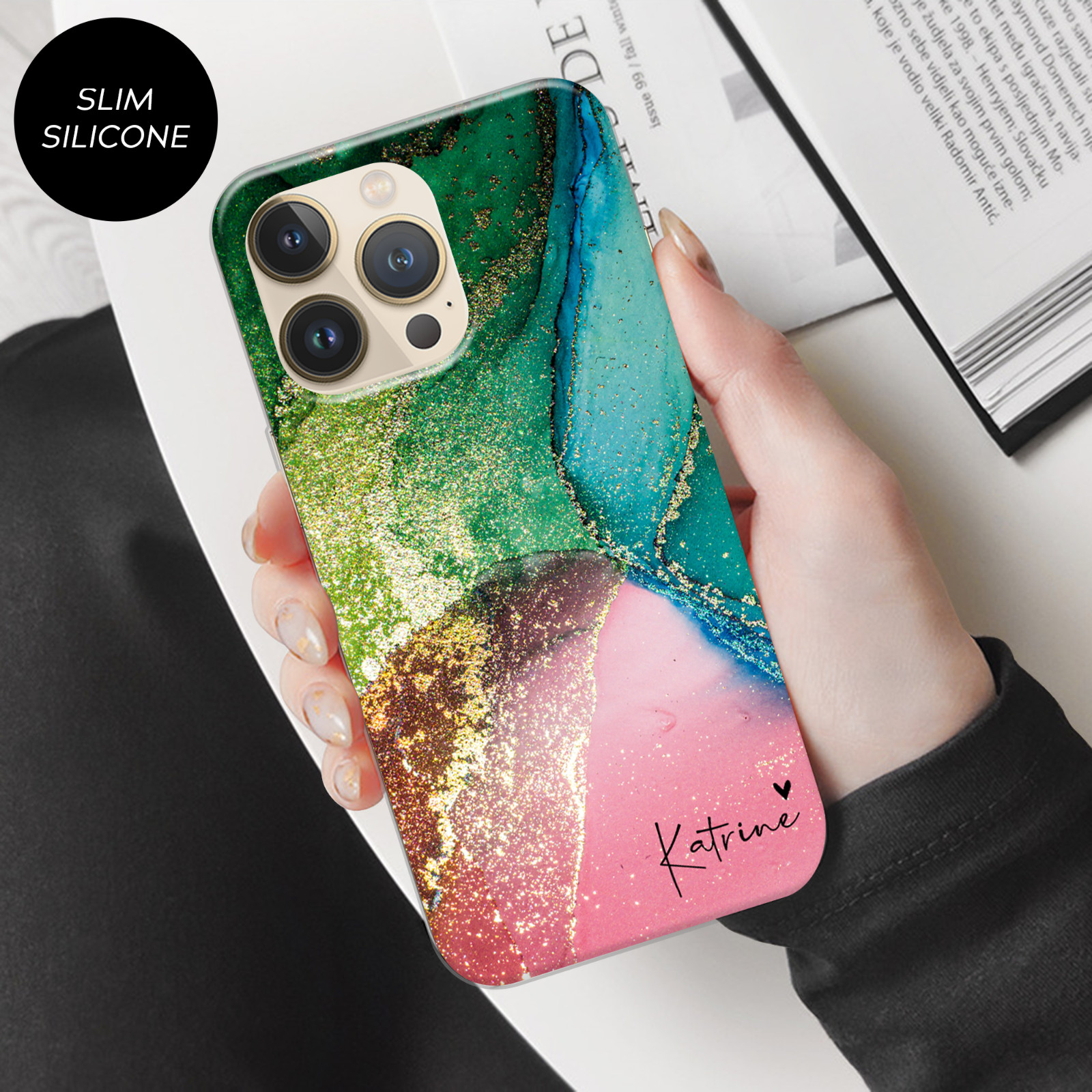 Personalised Phone For iPhone 14 11 12 13 15 Xr Case Name Silicone Cover Marble
