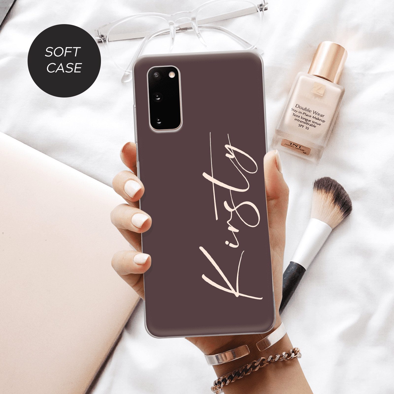 Personalised Phone Case Beige Color Name Silicone Cover For Samsung S22 S23 S24