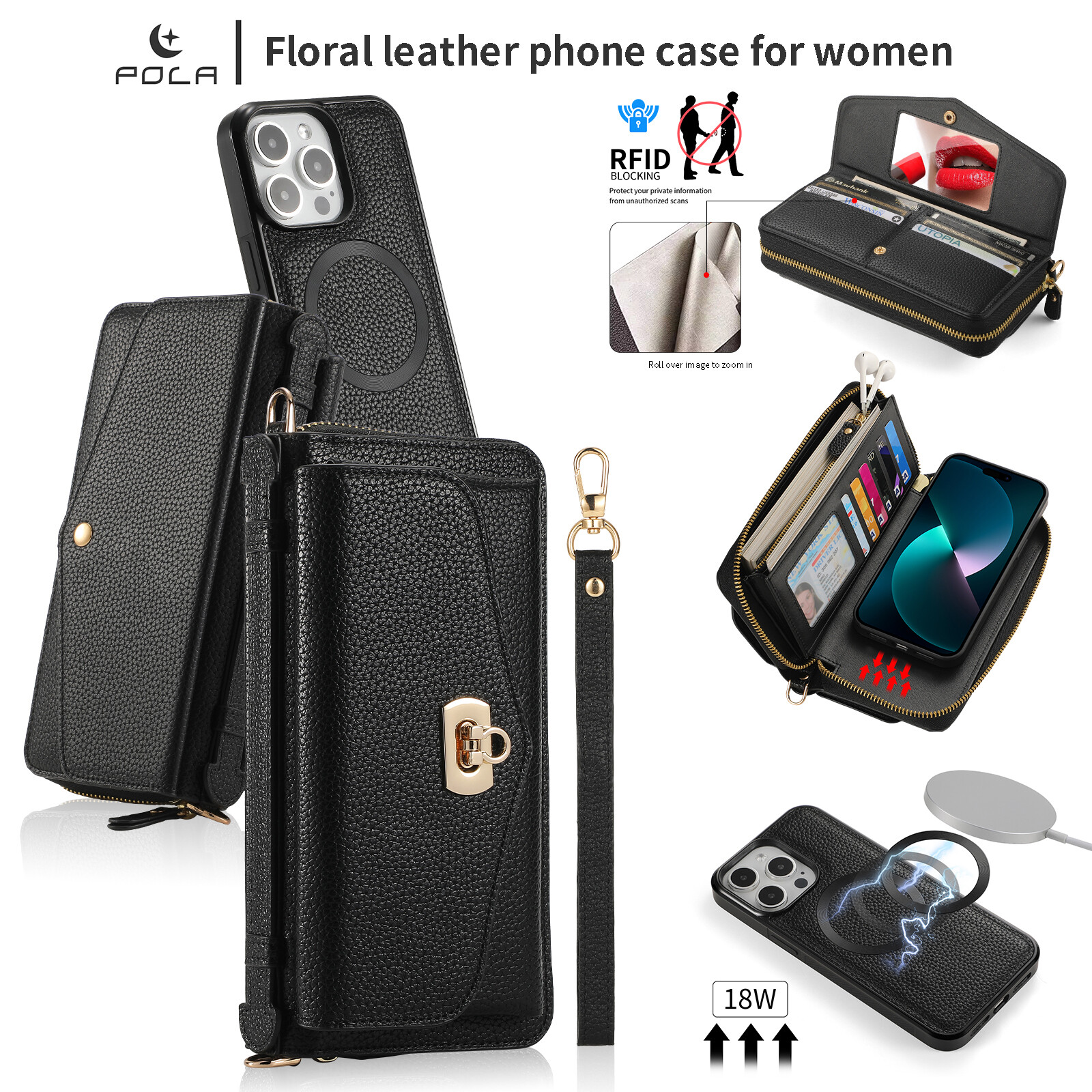 For iPhone 16 15 Pro Max 14 13 12 Crossbody Handbag Wallet Magnetic Leather Case
