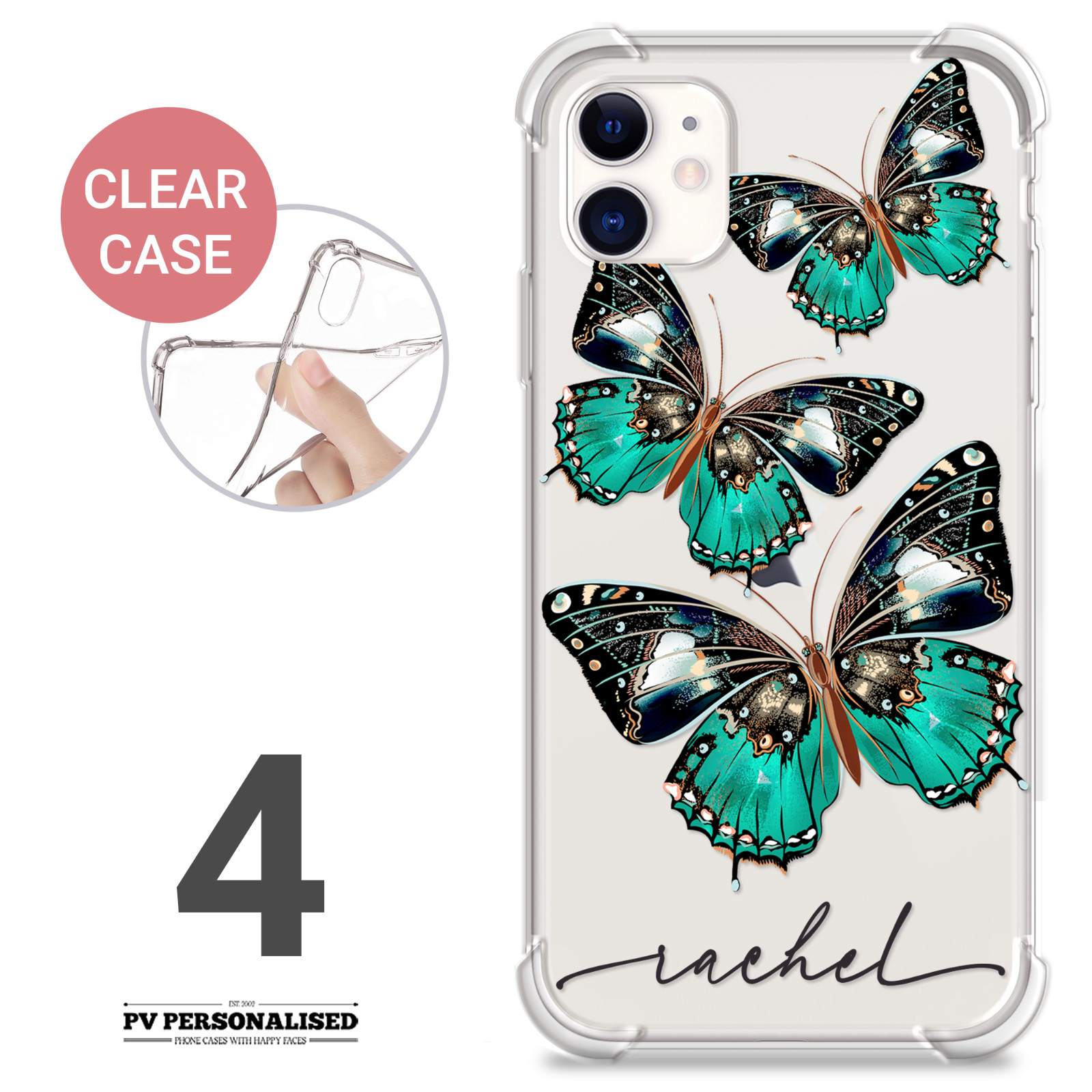Personalised Case For iPhone 11 15 12 13 Pro 14 Butterfly Name Shockproof Cover