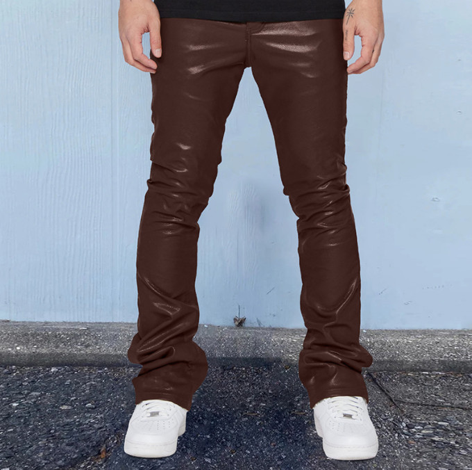 New Men's Faux Leather Pants Mid Waist Hip hop Trousers Casual PU Long Pants