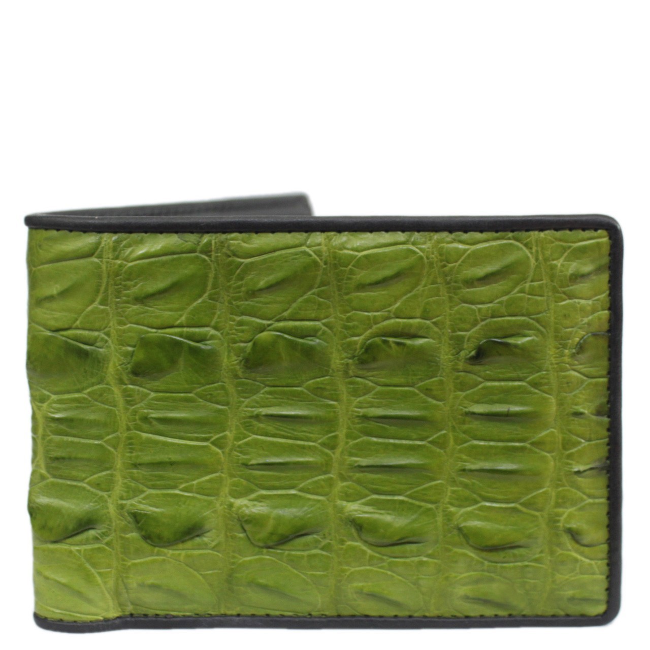 Handmade and Genuine Croc Leather Skin Bifold Wallet Men's Green Tail Skin