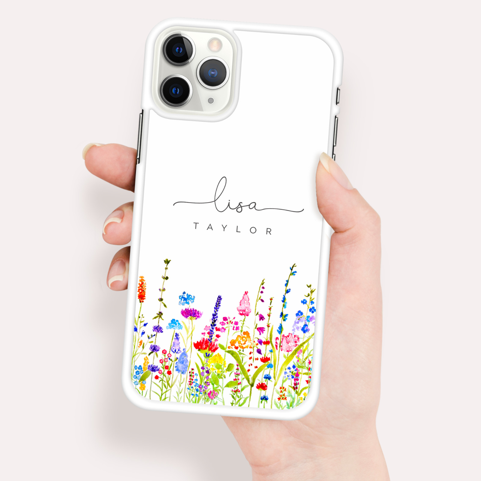 Personalised Name Floral Phone Case Plastic Cover For iPhone 11 12 Xr Xs 7 8 Se