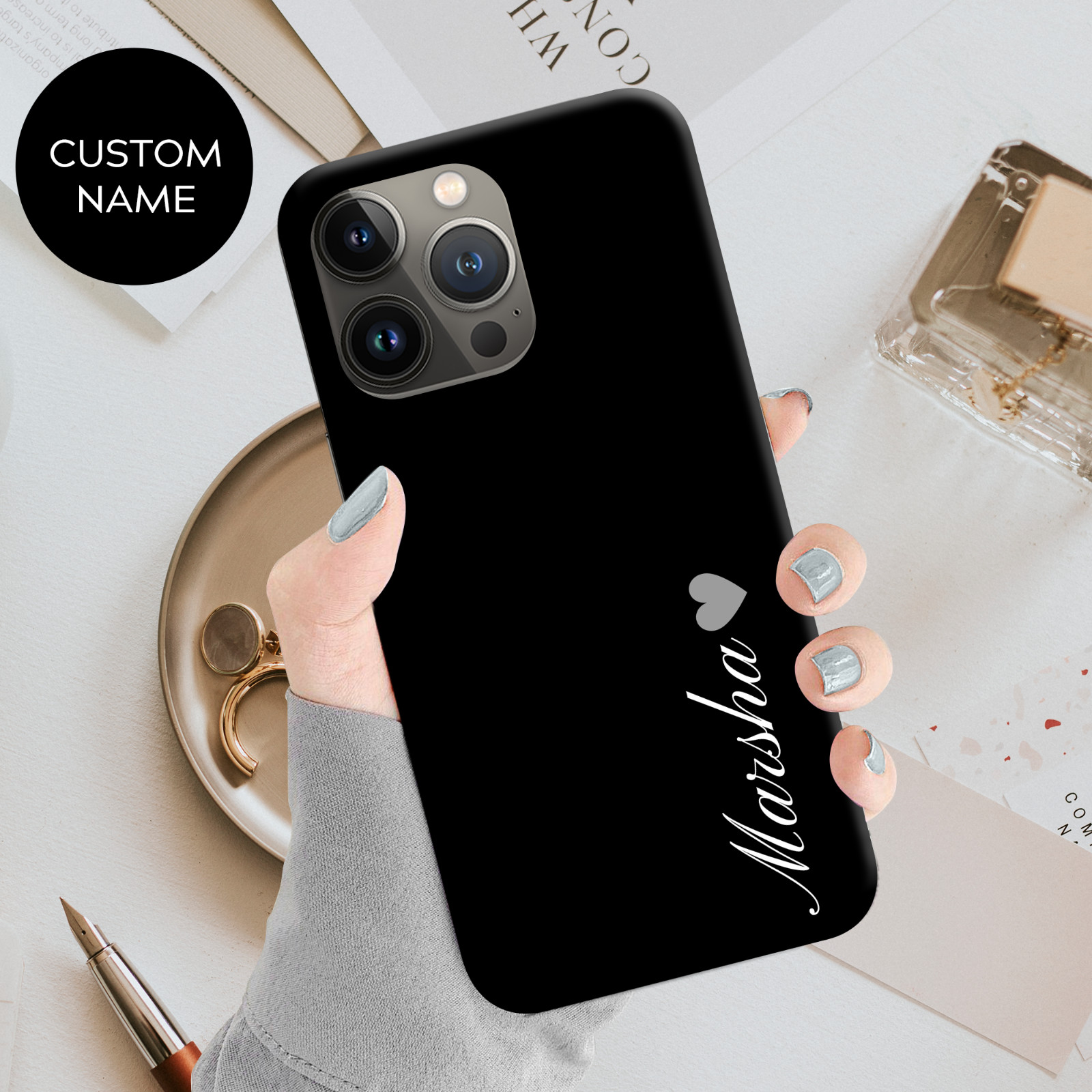 Personalised Phone Case Black Name Heart For iPhone 12 13 Pro Max 11 Xr 7 8