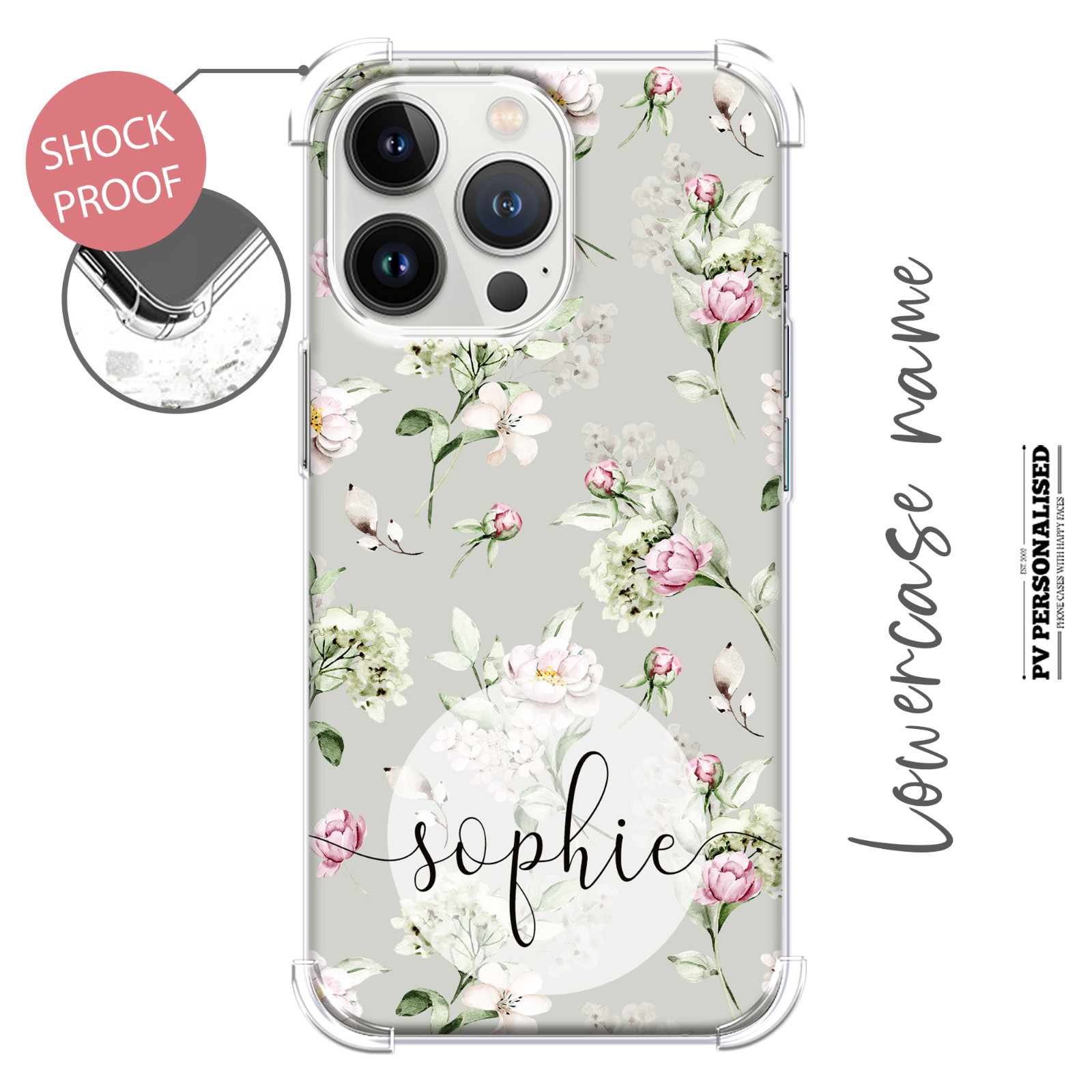 Personalised Phone Case for iPhone 11 12 13 14 7 8 Gel Shockproof Cover Floral