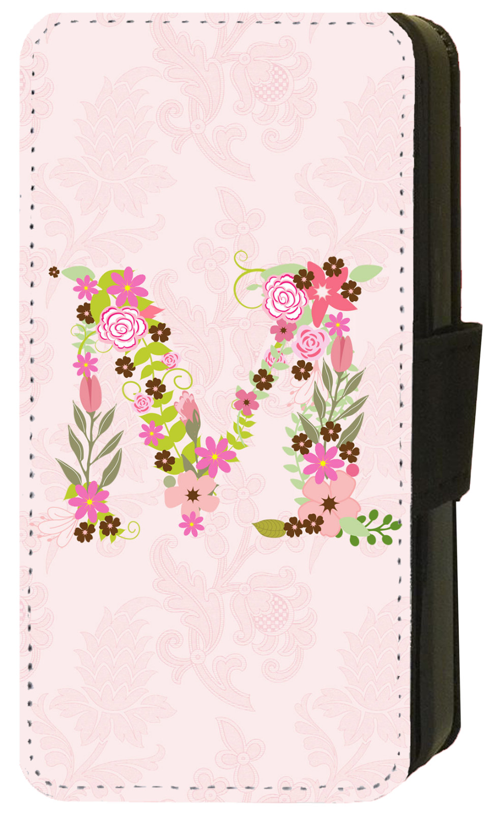 Personalised INITIALS Galaxy PINK FLORAL LETTER Flip/Wallet Phone Case S9-S23