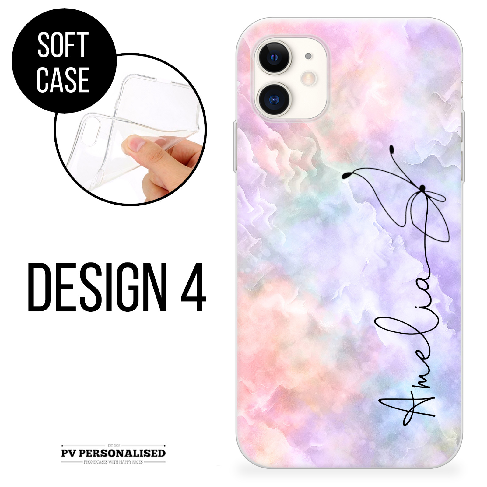 Personalised Phone Case Marble Name Cover Silicone For iPhone 11 15 12 13 14 16