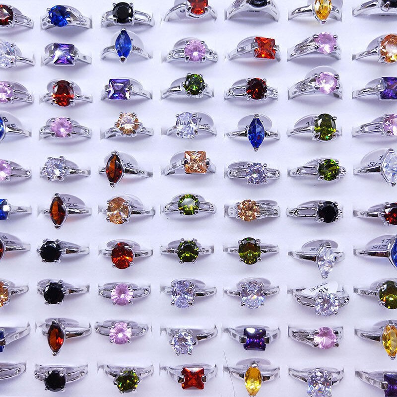 Wholesale Colorful Zircon Crystal Mixed Rings Bulk Finger Band Ring Jewelry Lot