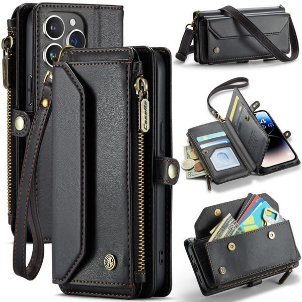 Case Me iPhone 13-16 Pro, Max Zipper Wallet RFID anti-theft Leather Phone Case