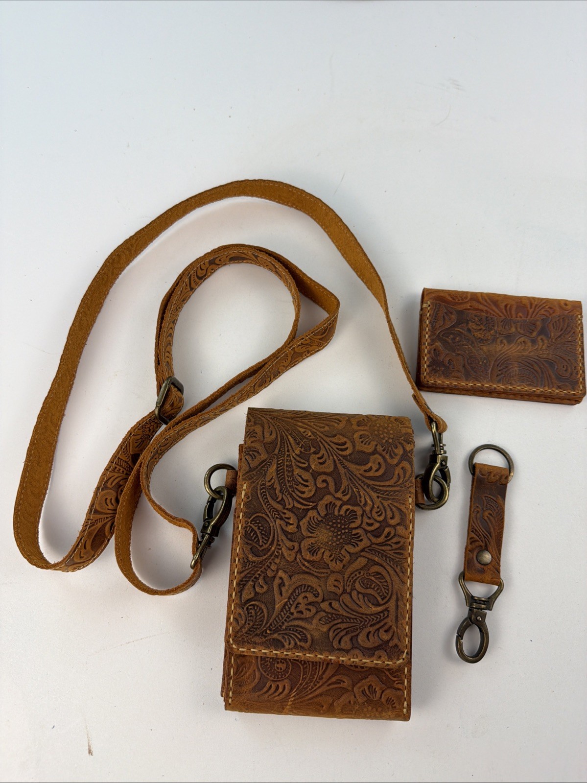 Purse Embossed Leather Crossbody With Card Wallet And Keychain