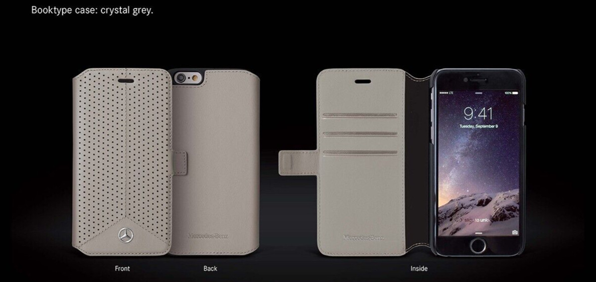 Genuine Mercedes Leather Perforated Book Wallet Case for Apple iPhone