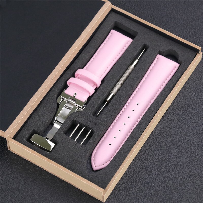 High Quality Genuine Leather Butterfly Buckle Watch Band Strap 10-22mm with Box