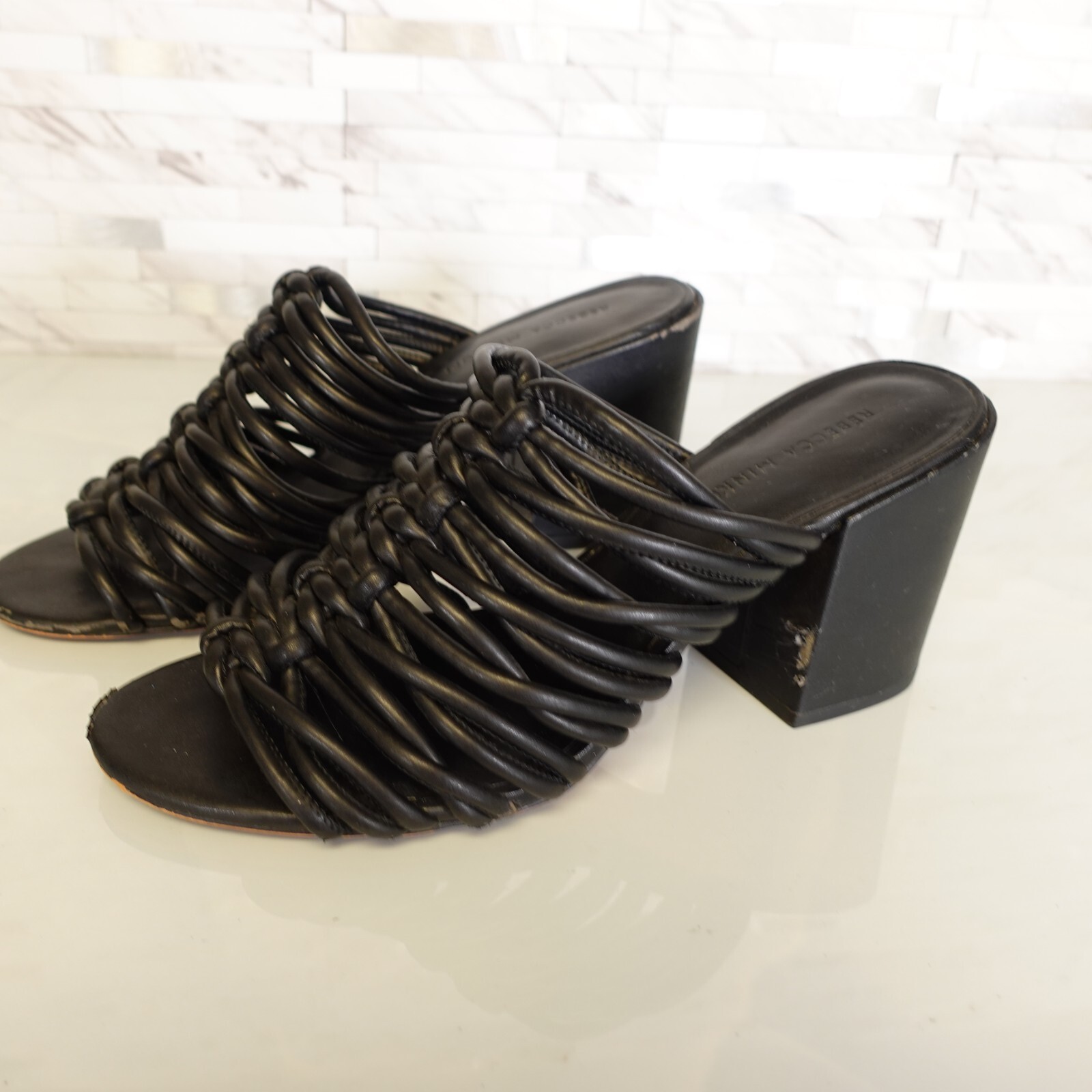 Rebecca Minkoff Sandals Leather 7.5 Slip On Slide Strappy Black Caged Goth