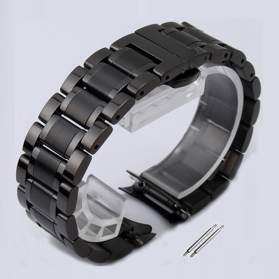 BLACK Curved Stainless Steel Watch Band Strap Clasp Solid Replacement 14-24mm