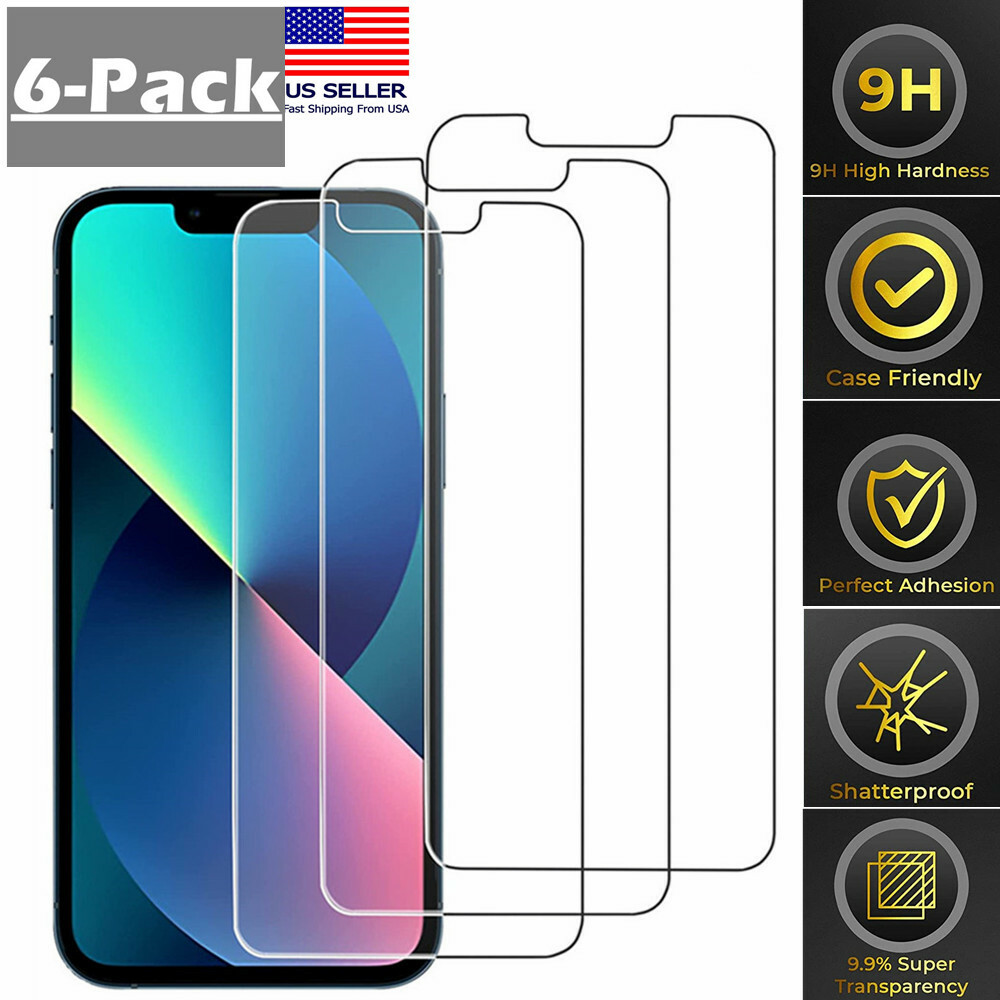 6 Pack Tempered Glass Screen Protector For iPhone 13 12 11 Pro Max XR X XS Max 8