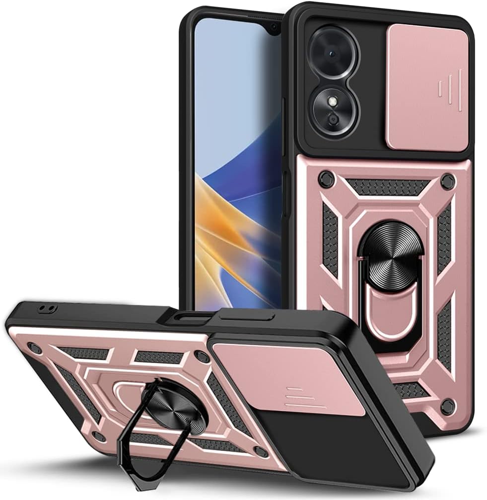 For OPPO A17 A78 A57S A77 5G Case, Slim Ring Shockproof Stand Phone Camera Cover