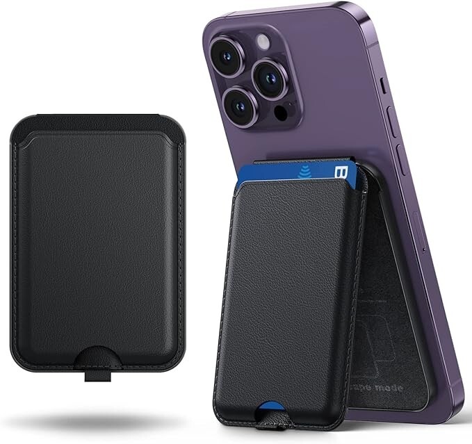 Magnetic Card Wallet Holder, Leather MagSafe Wallet Stand 3 Card Holder, BLACK