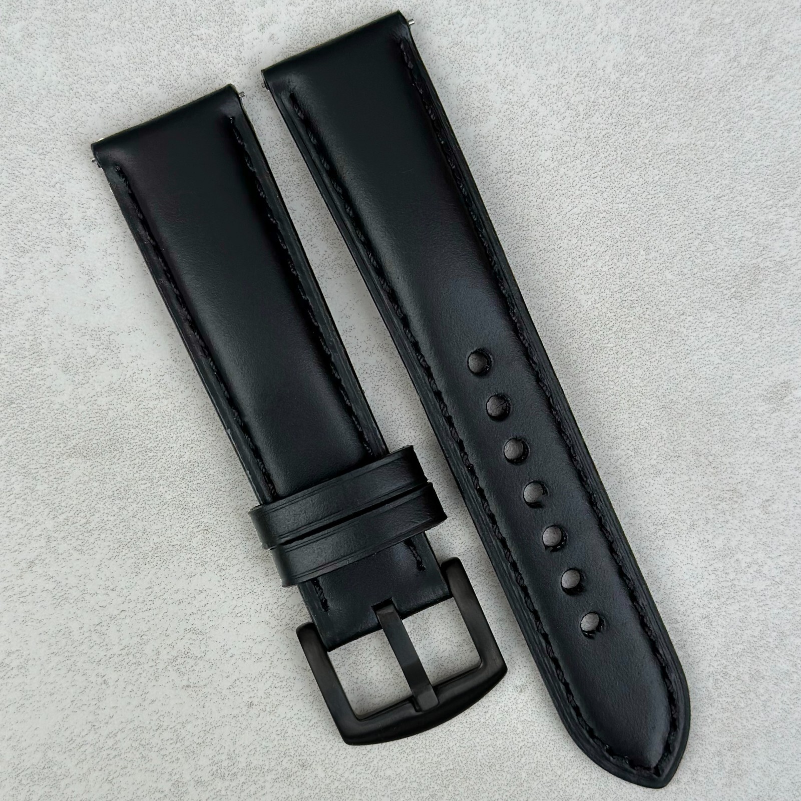Black Padded Leather Watch Strap Black Buckle 18mm 19mm 20mm 21mm 22mm 24mm