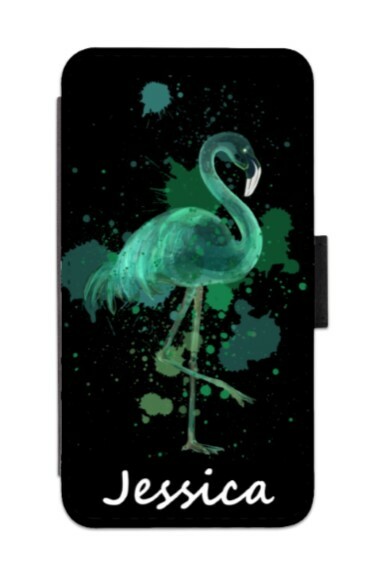 Flamingo Phone Case personalised name For iPhone PU Leather Wallet Flip Cover