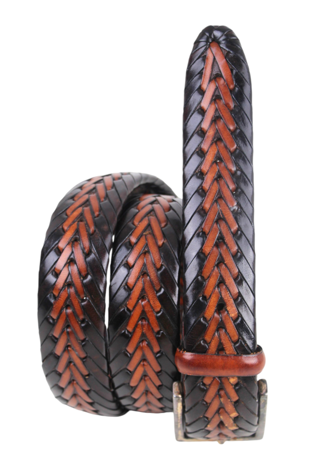 Leather Island BRAIDED BLACK BROWN GENUINE LEATHER 1.25"Wd DRESS BELT Sz 40 (G93