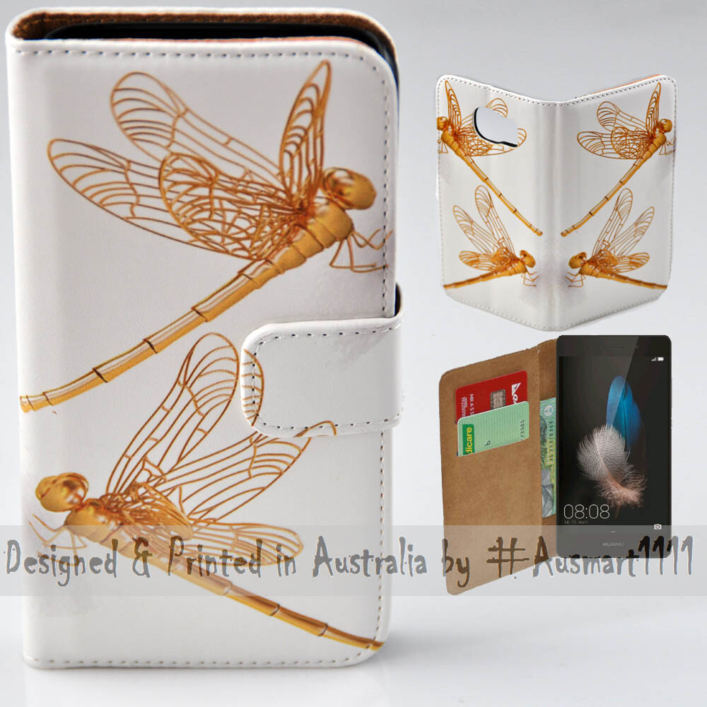 For Huawei Series - Gold Dragonfly Print Wallet Mobile Phone Case Cover
