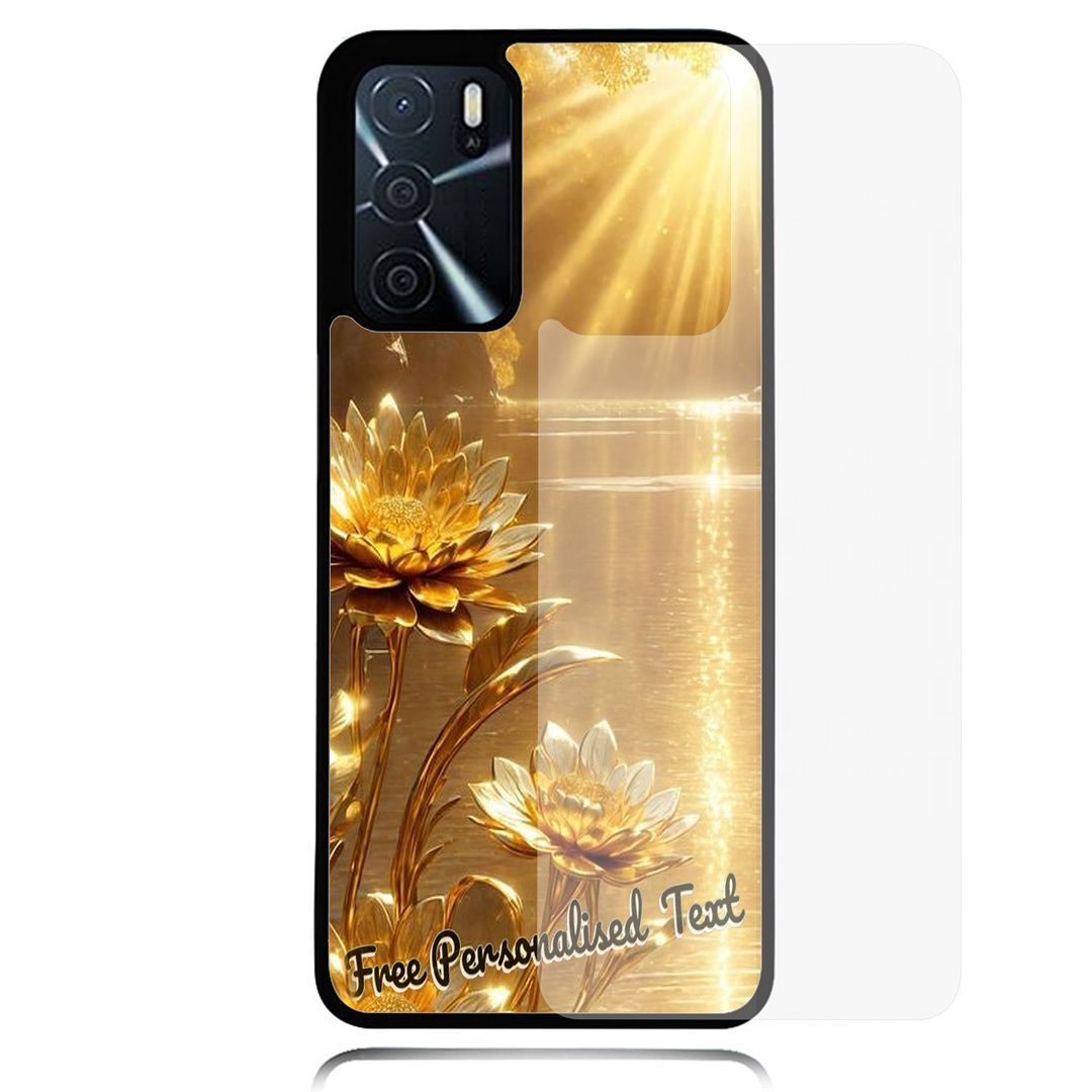 Personalised Text For OPPO Glass Phone Case Series - Sunray Gold Flower