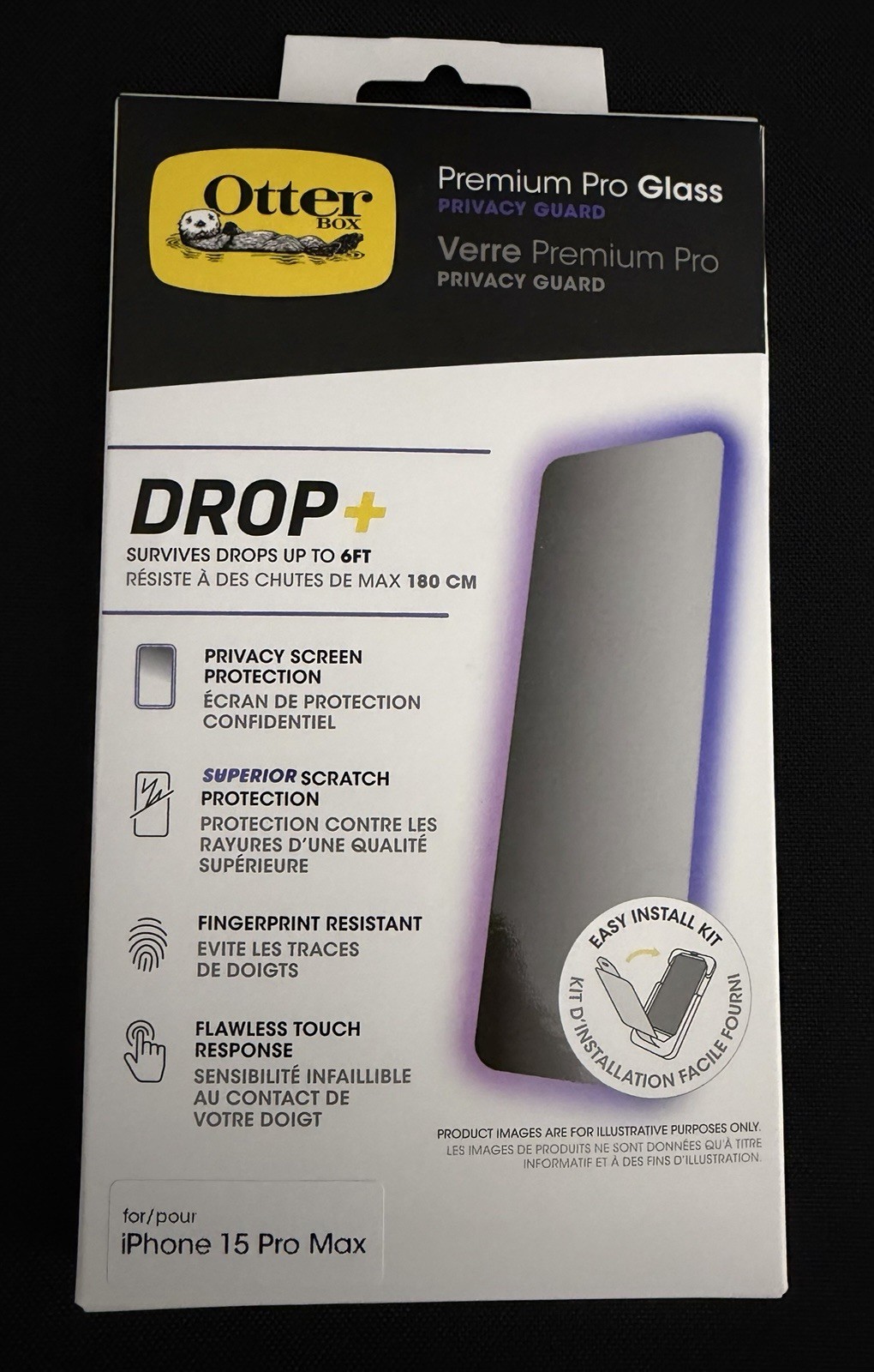 OtterBox Premium Pro Privacy Glass Screen Protector iPhone 15 Pro Max NEW