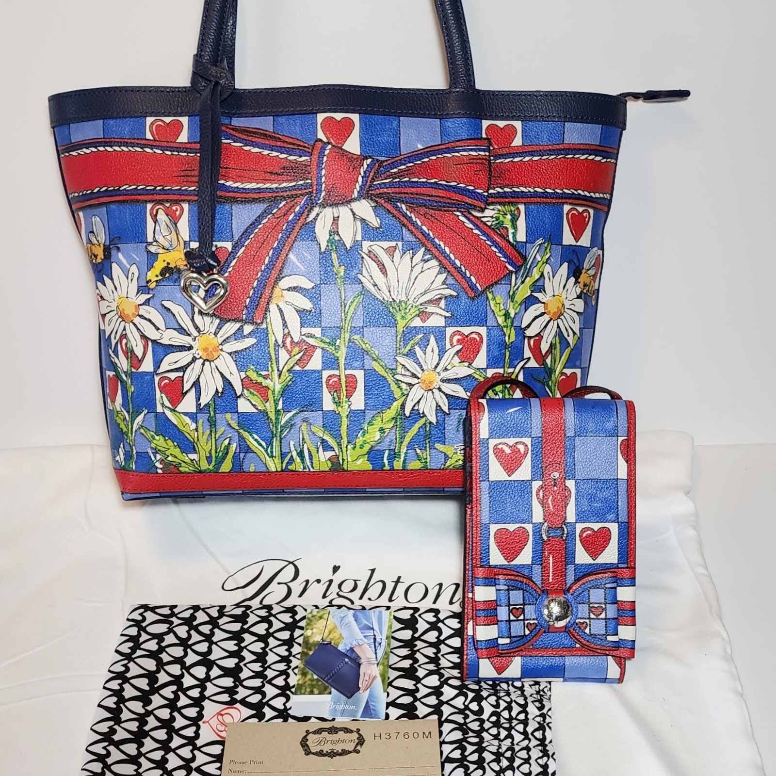 BRIGHTON FASHIONISTA BEE HAPPY LARGE TOTE CROSSBODY CELL PHONE CARD CASE SET$550