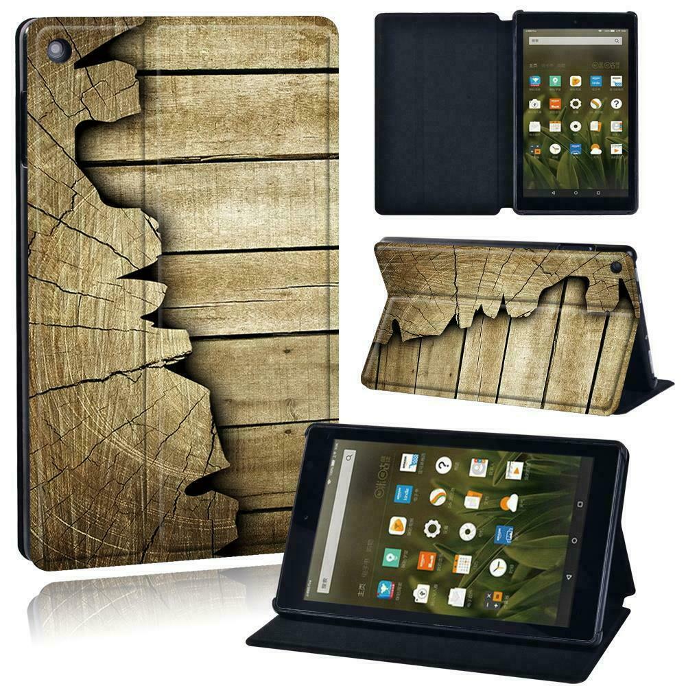 UK Wood Leather tablet Stand Cover Case for Amazon Fire 7/HD 8/HD 8 10/Plus/2024