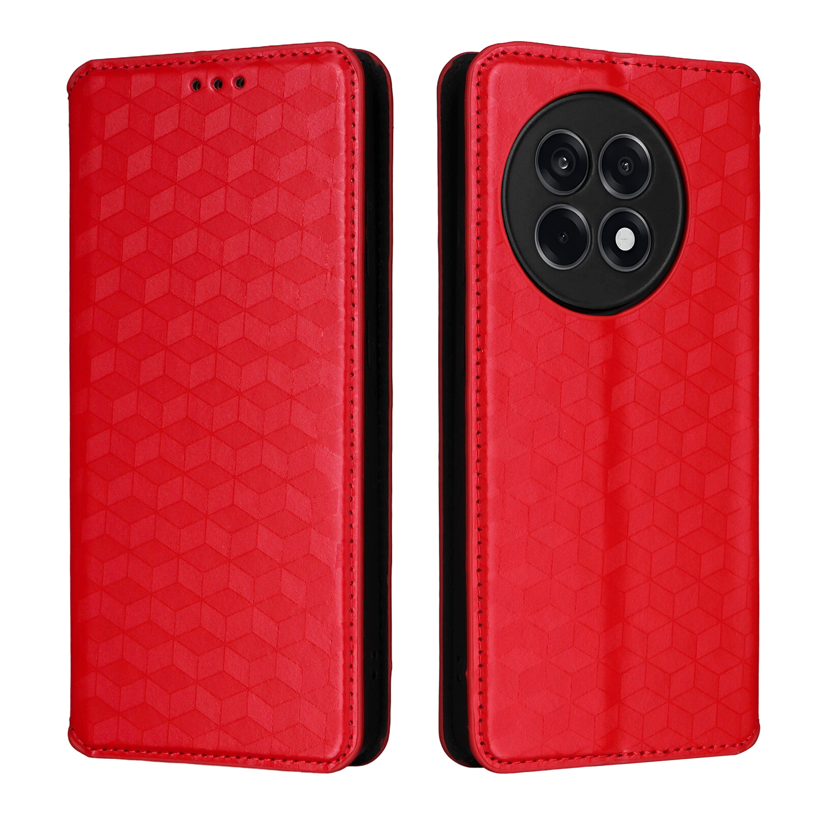 For OnePlus 13R, Phone Case Fashion Grid Wallet Flip Leather Full Cover