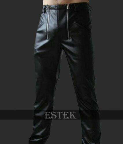 Men's Genuine High Quality Cowhide Leather Carpenter Pants Casual Trousers Jeans
